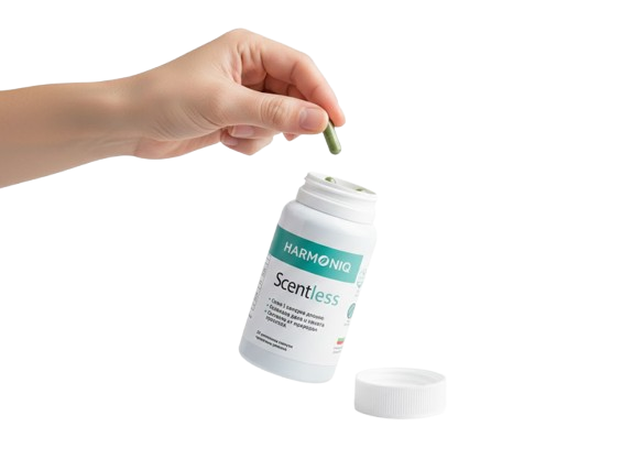 Със Scentless получавате пълна защита от неприятна миризма, подобрено храносмилане и по-чиста кожа – всичко в една малка дневна капсула.